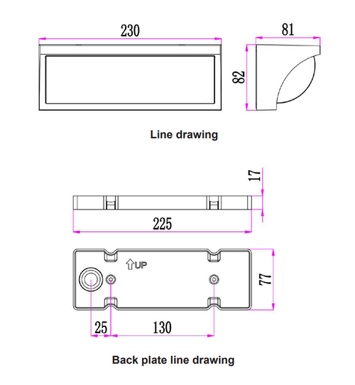 DIMENSIONS: 230mm (length) x 82mm (height) x 81mm (projection)