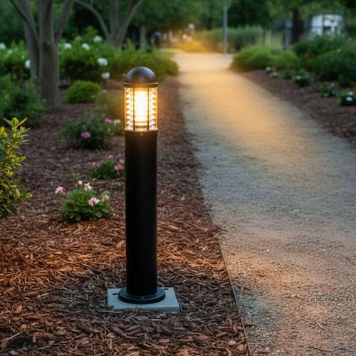 This bollard light is a top-tier commercial grade choice for anyone seeking a robust and elegant solution to illuminate outdoor spaces. It is engineered to seamlessly combine functionality with sophisticated design, making it ideal for enhancing gardens, parks, footpaths, and other outdoor areas. Whether for residential or municipal use, this light offers versatility and reliability, providing a perfect blend of aesthetics and performance. Its sleek black finish, achieved through a high-quality powder coating, ensures it complements a wide range of outdoor settings while resisting the elements.
