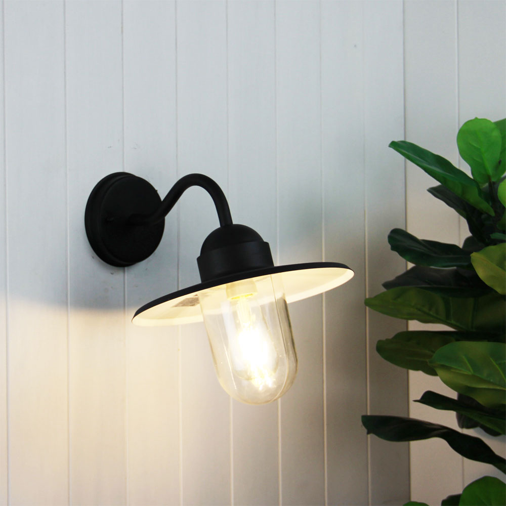Simple outdoor wall light with a clear glass. This gives a great look at a very affordable price.