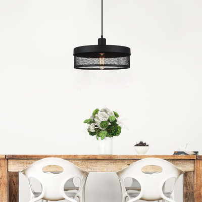 This beautiful wrought mesh single pendant light features a cloth covered cord. Looks great with a vintage filament globe.