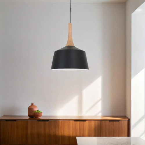 This pendant light is shaped using a minimalist, subtle design - refined, a little unusual, but most definitely pleasant to the eye. It has a long 3m adjustable suspension to provide for low to high ceilings. The fitting - which can take any E27 standard globe - is part steel, part timber, so very uber chic. You will notice that it has high quality detail, an understated curve without seams, and a lovely matte outer finish. Great for use in the bedroom, dining room, kitchen and living room as well as cafes.