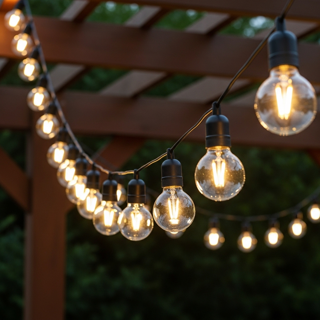 LED outdoor/indoor LED sting lights with 20 pcs. globe. IP44 rating, please note to keep the plug undercover. 500mm spaces between globes.