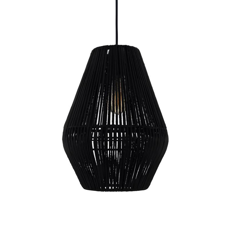 This pendant light combines natural textures with refined craftsmanship, offering a visually striking yet functionally efficient lighting solution. Constructed from a black paper rope shade supported by a solid metal framework, it achieves both aesthetic appeal and structural reliability. With a 275mm diameter and 350mm height, it offers a balanced size suitable for standalone use or layered pendant compositions in larger interior settings.