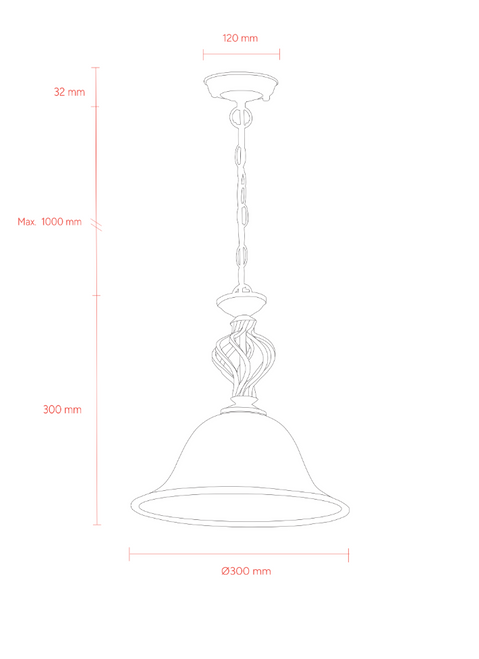 With a body dimension of 300mm in height and 300mm in diameter, this pendant light is proportioned to suit a wide range of ceiling heights without overwhelming the surrounding space. The adjustable suspension system, extending up to 1000mm, allows precise control over the installed drop, supporting flexible placement above dining tables, kitchen islands, or feature areas. A compact ceiling canopy measuring 120mm in diameter and 32mm in height provides a clean and unobtrusive ceiling interface once installed.