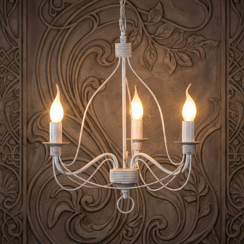 This pendant light is a refined candelabra-style luminaire designed to deliver both decorative presence and reliable illumination within indoor environments. Finished in a hand painted white coating, the fitting presents a classic silhouette that complements both traditional and transitional interiors while maintaining a strong architectural identity. Constructed from iron, the structure provides mechanical stability and long-term durability, ensuring consistent performance when installed in residential living areas, dining spaces, or feature stairwells.