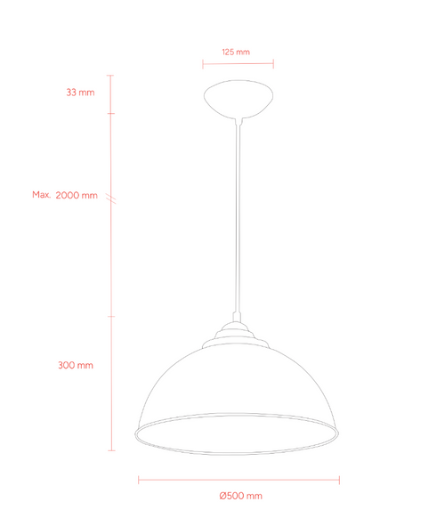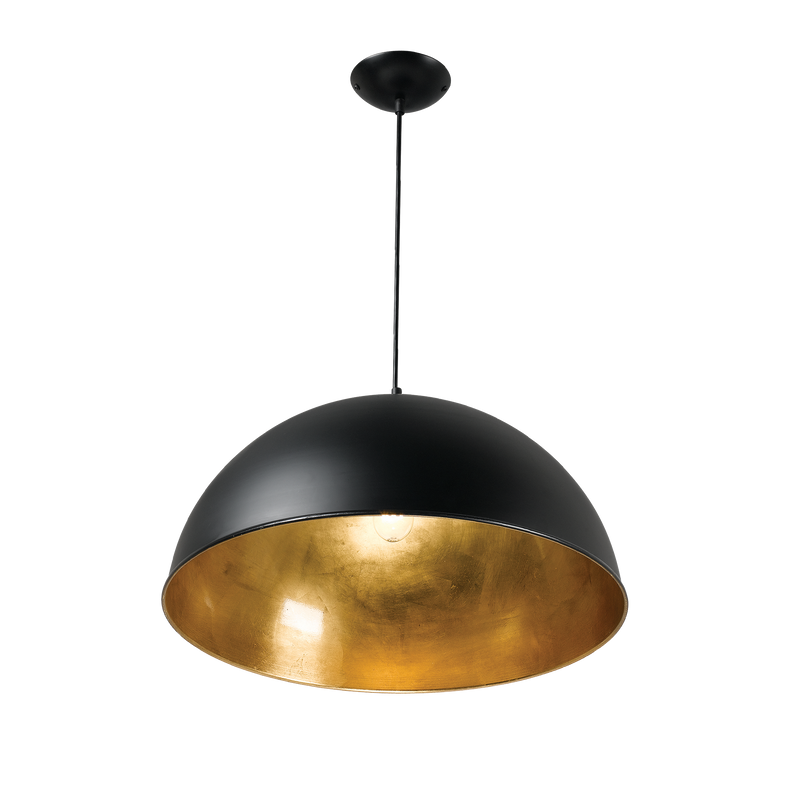 This pendant light delivers an impressive 50cm dome design finished in a sophisticated black exterior with a contrasting gold lining, creating a striking visual statement while enhancing interior ambience through its warm internal surface reflection. The 500mm diameter shade supports broad downward light distribution, while the 300mm height ensures a balanced profile that integrates effectively within dining areas, kitchen environments, hallways, and living spaces. Its refined aesthetic elevates both contemporary and classic interiors, providing not only illumination but also a distinctive decorative presence.
