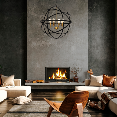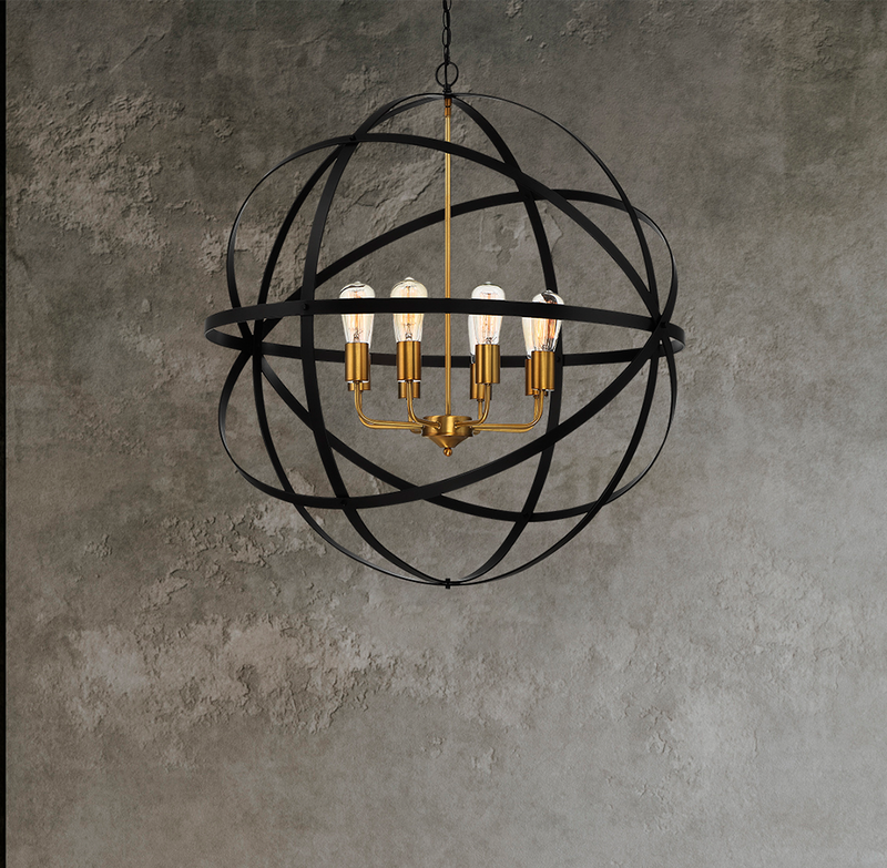 Constructed from durable iron, the structure provides high mechanical stability and long-term reliability in residential applications. The rigid strap sphere frame delivers structural integrity while allowing unobstructed light dispersion, supporting effective illumination without visual congestion. The contrast between the bronze exterior and gold internal detailing introduces warmth and tonal depth, enabling the fitting to integrate seamlessly into modern, contemporary, and transitional interior schemes.
