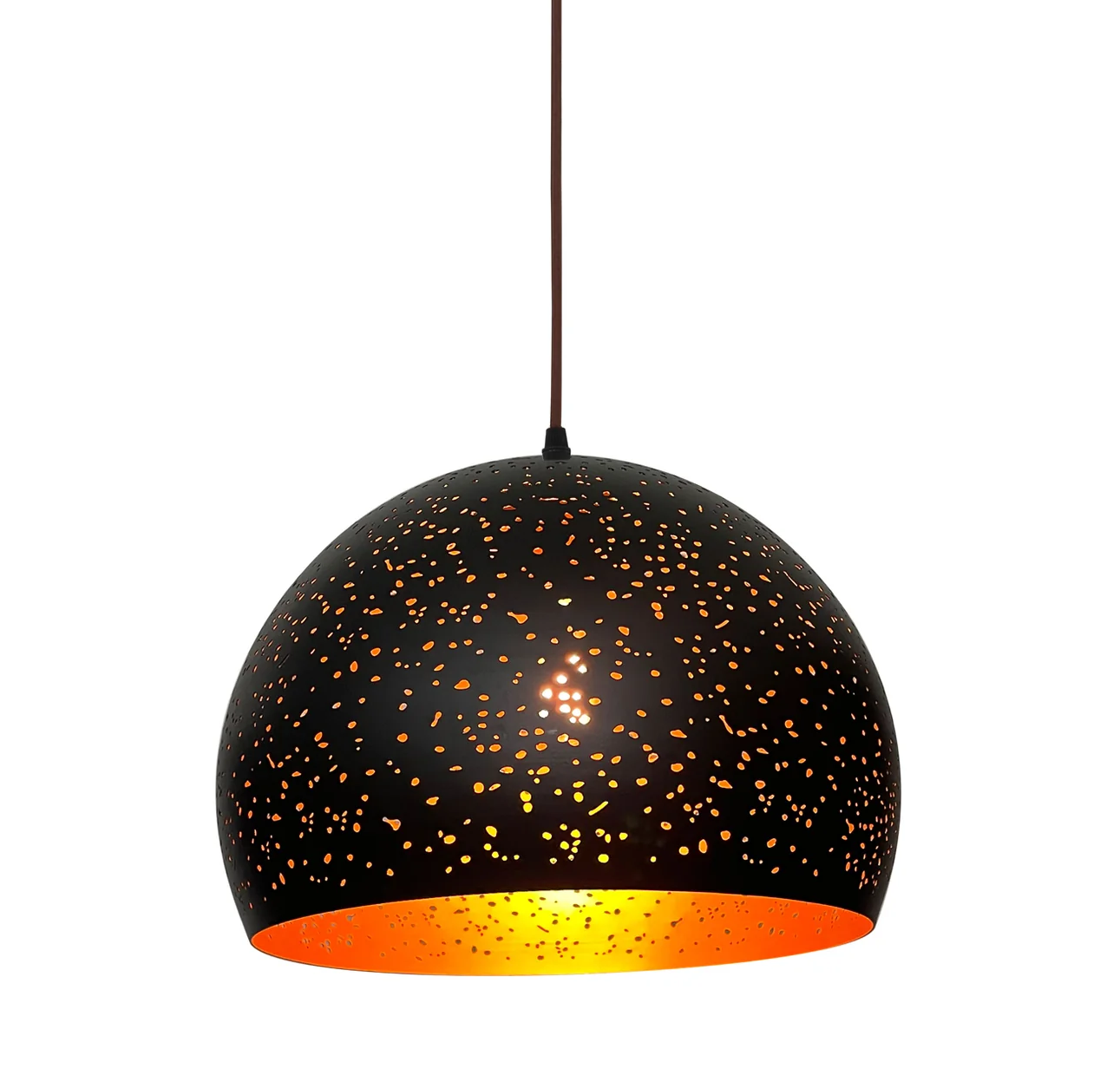 Designed for versatility, the pendant incorporates a 3000mm adjustable suspension cable that allows for precise installation at varying ceiling heights. A 100mm diameter ceiling canopy provides secure mounting while maintaining visual harmony with the fixture's proportions. The combination of black exterior and gold interior creates a distinctive luminance that adds depth and character to its illumination, making it an ideal choice for feature lighting in living rooms, dining areas, or hallways.