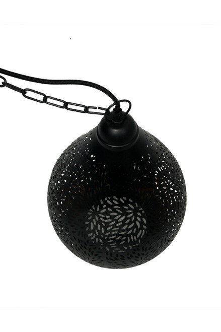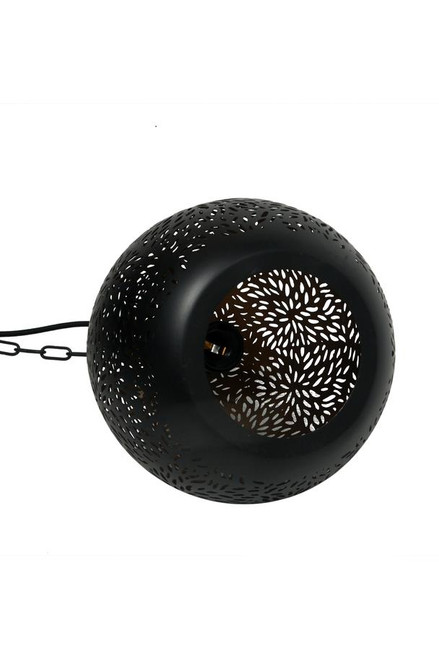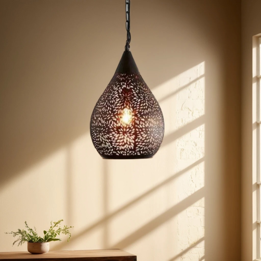 This pendant light features a delicately-patterned perforation in a teardrop shape.