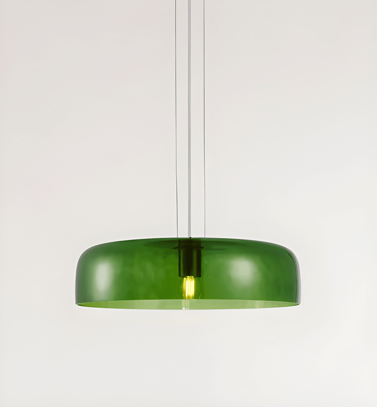 This pendant light combines refined aesthetics with durable construction, making it a striking addition to interior spaces. Featuring a dome-shaped shade in green glass with subtle brass highlights, it creates a warm yet contemporary look that suits both modern and traditional décors. The generous 420mm diameter ensures a broad diffusion of light, while the 140mm profile maintains a sleek and unobtrusive presence. Its elegant form makes it ideal for use in dining rooms, kitchens, or living areas where both function and style are paramount.