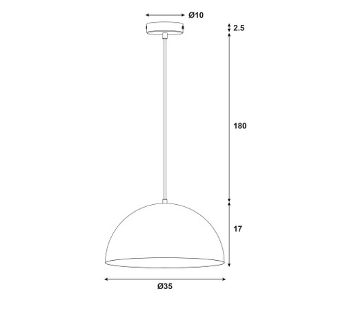 With a diameter of 350mm and a height of 170mm, this pendant light strikes a balanced presence that is both visually striking and functional without overwhelming the space. The fitting canopy has a compact diameter of 100mm and a height of 25mm, ensuring a sleek and unobtrusive installation. The suspension length of 1800mm is fully adjustable, providing flexibility in installation and allowing the light to be tailored to the specific height requirements of the space, further enhancing its adaptability to various room sizes and ceiling types.