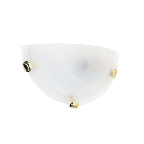 Classic alabaster glass semi circle uplighter wall light with 3 gold clips.