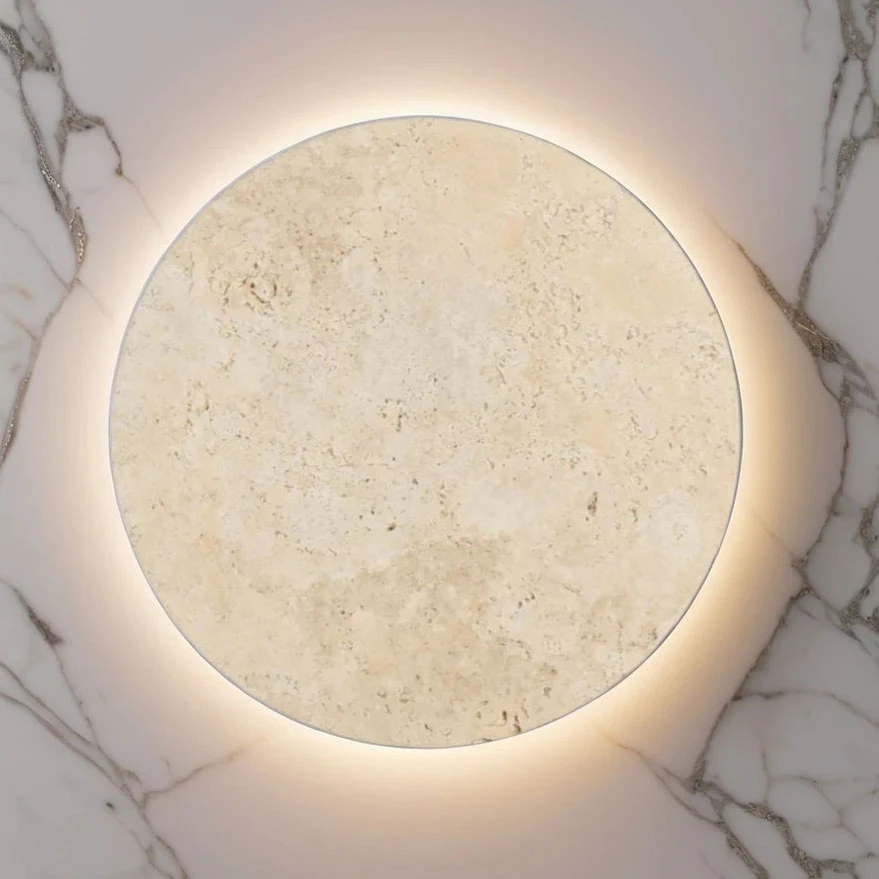 This LED wall light combines advanced lighting technology with a refined natural aesthetic, making it a standout solution for contemporary interiors. Featuring a round backlit design in travertine, it provides a sophisticated and timeless visual appeal while delivering exceptional functionality. This light is CTS (Colour Temperature Selectable), offering the flexibility to choose between 3000K (warm white), 4000K (cool white), or 5000K (daylight white) to match any setting or preference. With a luminous output of 1350 lumens, this light ensures bright and natural illumination that enhances the appearance of any environment.
