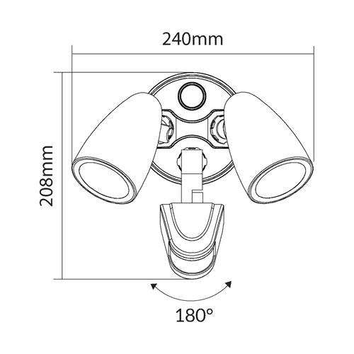 The integrated PIR motion sensor enhances operational efficiency by activating illumination only when movement is detected within a 12000mm range. This sensor-driven functionality improves energy conservation while providing immediate response lighting for security purposes. The unit also features independently adjustable twin heads, allowing precise directional control of the light output to optimise coverage and minimise unwanted light spill.