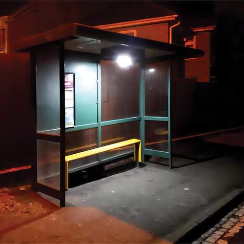 Mechanically, the luminaire measures 379mm x 137mm x 92mm, with the remote solar panel measuring 630mm x 293mm x 123mm, forming a compact yet robust assembly suitable for mounting beneath shelters and structural overhangs. The enclosure achieves an ingress protection rating of IP65 (fully weatherproof) and an impact resistance rating of IK10 (impact and vandal resistant), ensuring suitability for public and semi-public environments where resistance to environmental ingress and mechanical abuse is essential. With a total system mass of 4kg, a connection lead of 3000m, and a comprehensive 5-year warranty (battery included), this solar batten light presents a dependable, low-maintenance lighting solution for bus shelters, car shelters, shipping containers, sheds, garages, gazebos, barns, stables, and similar covered outdoor applications.