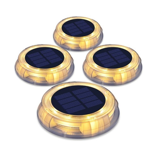 This four-pack set of solar deck lights are the perfect solution to lighten up your outdoor areas. You will receive high praises on your style and your clever illumination. The circular design gives a smart look on the outdoor terrain, and they are large - so provide great lighting. No mains power or cabling required. Each light has a powerful battery so can provide lighting for a few nights, even when the days are cloudy. They can be installed either on the ground using the included spike or using screws. They are incredibly robust and shatterproof, able to handle up to 20 tons of weight!