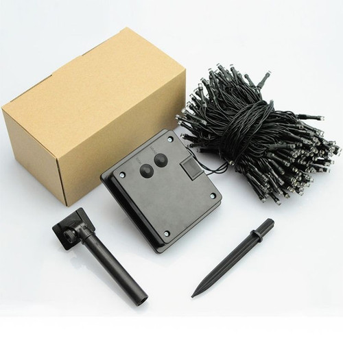 This is a superb 10m solar fairy light kit with 100 LEDs. The cord is attached to an external solar panel and a battery pack which gets charged during the day and supports over 8 hours of lighting at night.