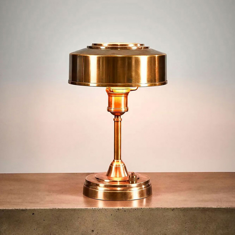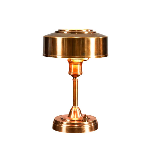This table lamp combines traditional styling with precision craftsmanship, making it a refined lighting solution for a variety of interior settings. Finished in antique brass, it exudes a warm metallic lustre that enhances its classic appeal, while the solid brass and glass construction ensures durability and a premium feel. The compact yet substantial proportions make it a versatile choice for desks, bedside tables, or accent areas, providing both functional illumination and decorative value.