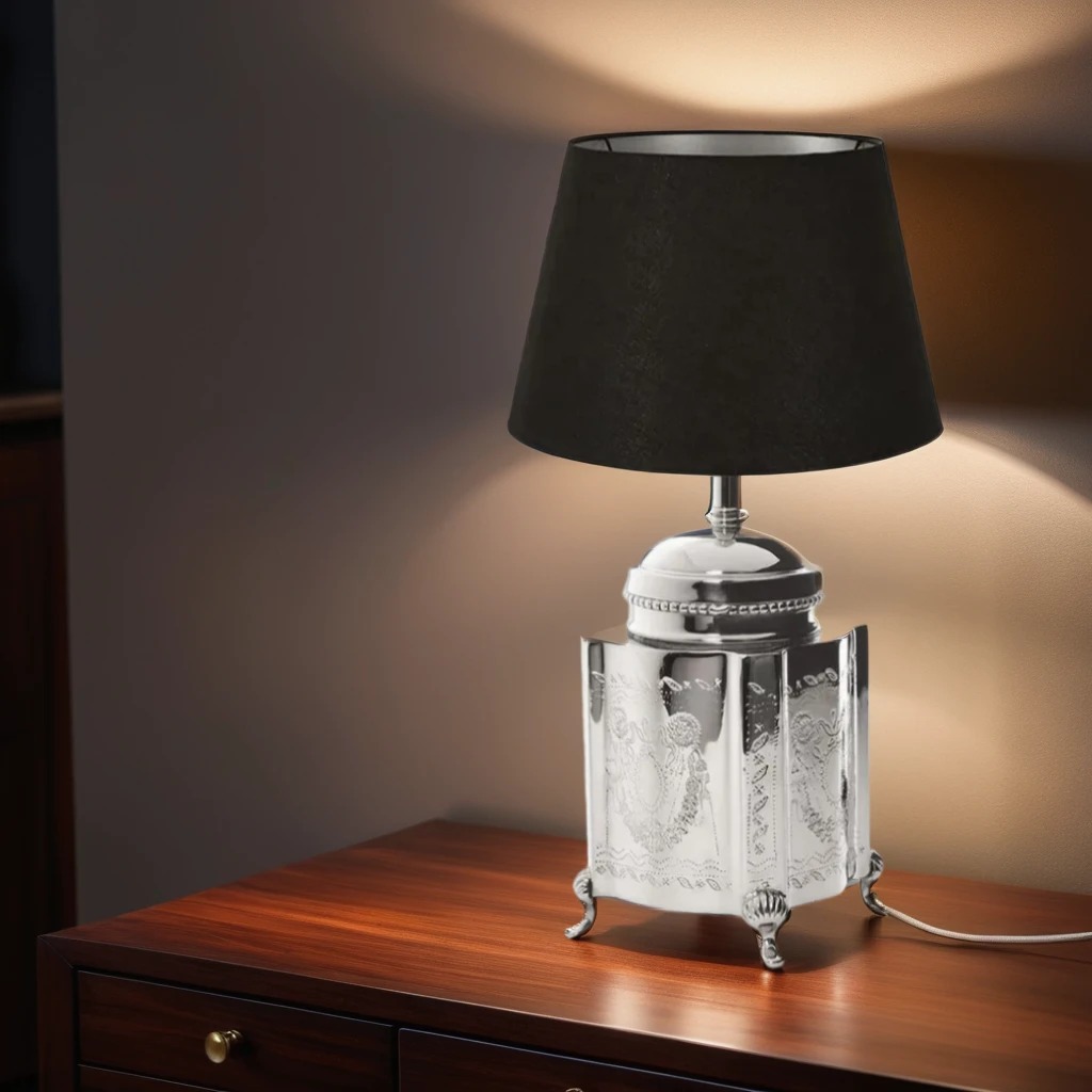 This table lamp utilises a stunning shiny nickel finish to make the item stand out in your home or workplace whilst the ornate detailing in the nickel demonstrates the undeniable quality of Emac & Lawton's products.