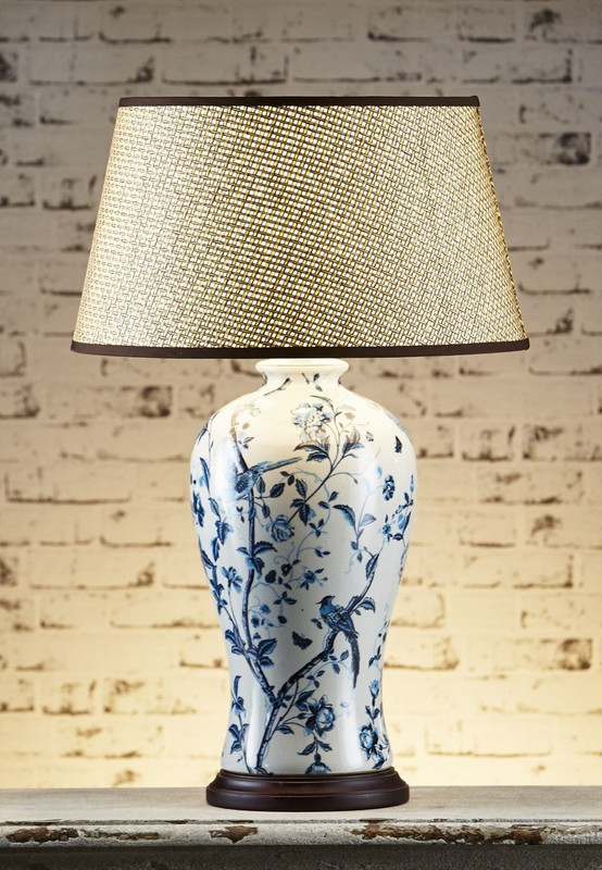 This table lamp is asophisticated ginger jar style porcelain table lamp with a classic blue and white floral pattern.