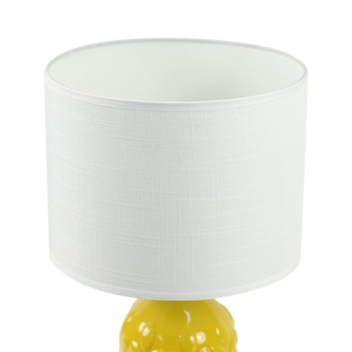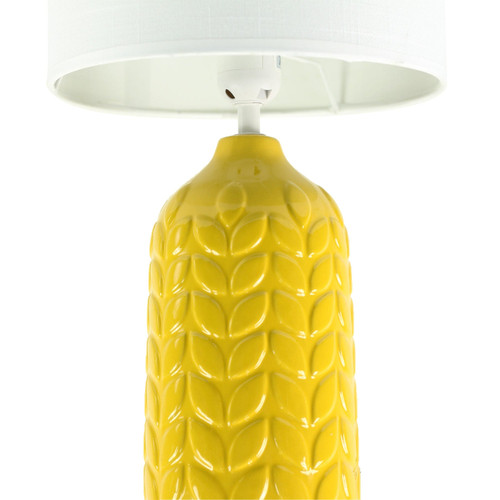 This table lamp exemplifies a refined balance between function and aesthetics, delivering a design that enhances both contemporary and transitional interiors. The vibrant yellow ceramic base features a textured leaf pattern that offers visual interest while maintaining a cohesive and structured form. Its compact dimensions of 420mm in height and 230mm in both width and depth allow it to serve as an elegant bedside or side table accent without overpowering the space. Engineered for indoor environments, this product carries an IP20 rating, signifying its suitability for protected interior applications.