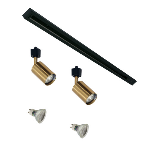 This track light is a high-quality lighting solution that combines modern styling with efficient illumination performance. Finished in black with brass lamp heads, it features a single circuit 3-wire H style track system with two adjustable cylindrical spotlights. The 1000mm track offers ample coverage, while each 60mm diameter lamp head can be individually angled to achieve precise light placement, making it suitable for both accent lighting and general illumination. The kit is supplied complete with two GU10 globes, ensuring it is ready for immediate installation.