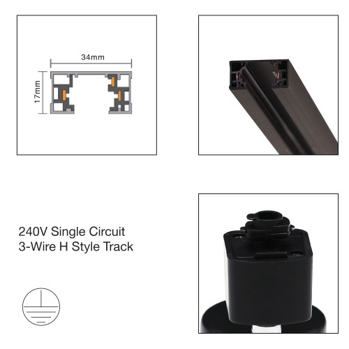 This commercial grade track light offers a professional lighting solution engineered for both performance and durability. Finished in a sleek black powder coat, it features a 1000mm length with a pair of precision-mounted adjustable spot heads. Designed with a single circuit, 3-wire H style track system, this fixture ensures reliable electrical connectivity and is compatible with standard commercial track lighting infrastructure. Its robust aluminium construction and integrated components are selected to deliver consistent performance in demanding environments.
