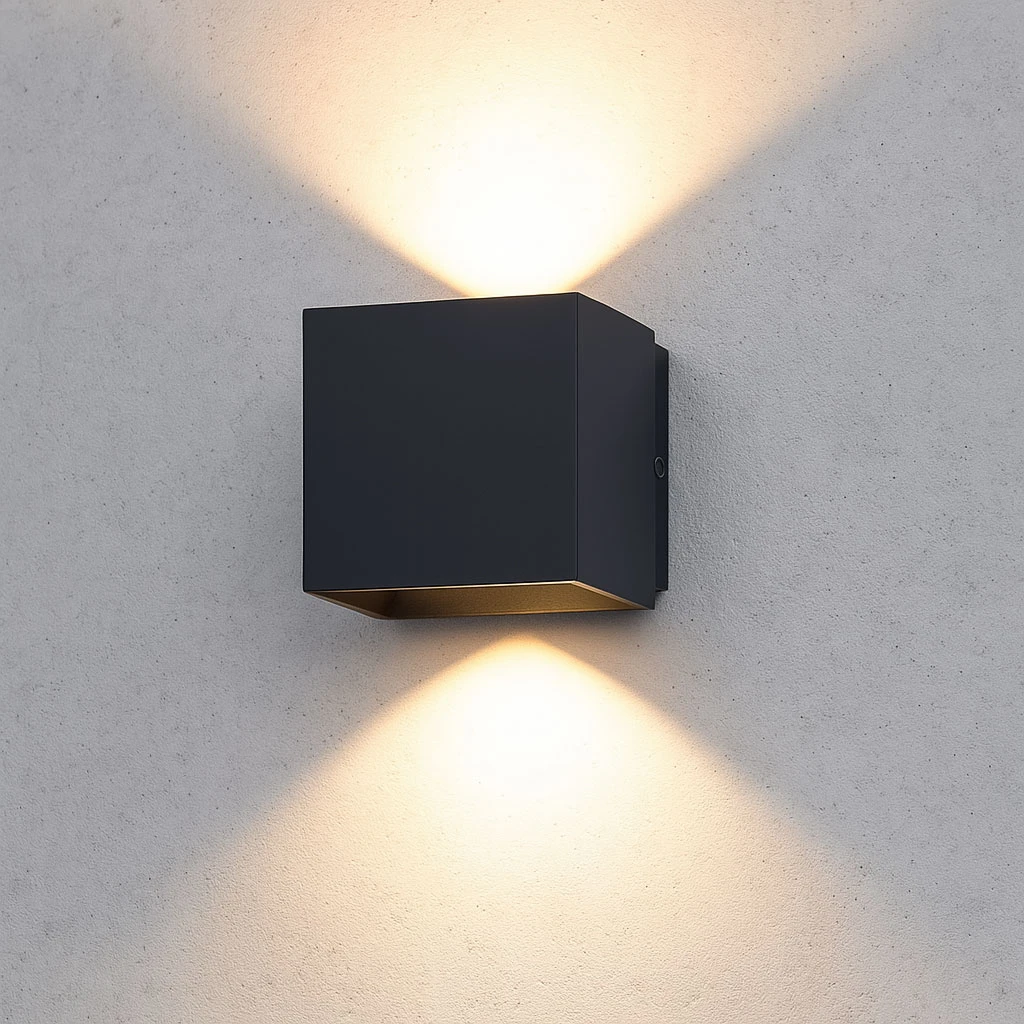 A defining feature of this fitting is its precisely engineered adjustable beam system. Housed within the compact structure are dual internal sectional wings that allow the beam angles of both the upward and downward light outputs to be independently adjusted between 15° and 120°. This sophisticated mechanism enables tailored light projection—from narrow, architectural accents to wide, ambient washes—allowing the user to adapt the lighting to specific design intents or environmental conditions. Whether highlighting vertical architectural features or creating a welcoming glow around an entrance, the beam adjustability delivers exceptional versatility.