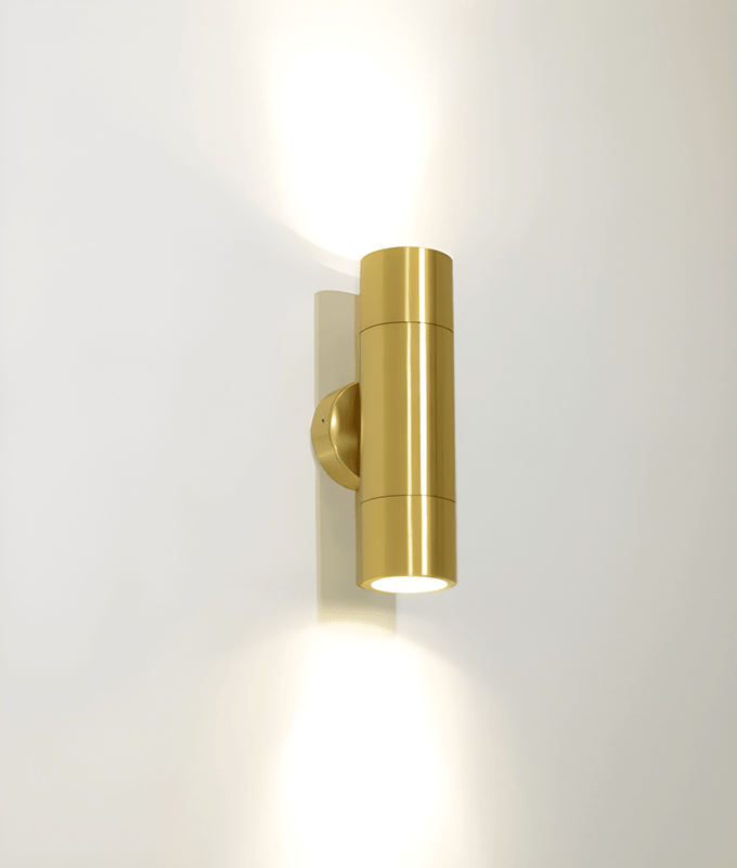This up down light in polished brass is a refined exterior fitting designed to combine durability with architectural appeal. Constructed from solid brass, it is engineered for long-term resistance against corrosion and harsh outdoor conditions, making it suitable for coastal and urban environments alike. The IP65 rating ensures complete protection against dust ingress and low-pressure water jets, allowing it to perform reliably in exposed areas without degradation of finish or function.