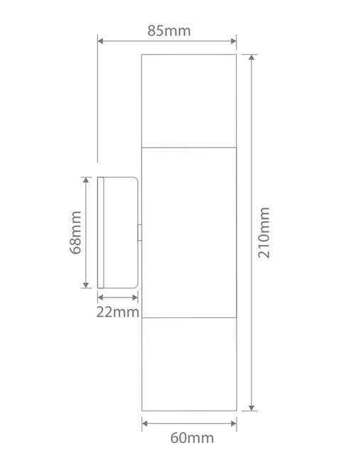This up down light offers a refined combination of durability, efficiency, and aesthetic appeal, making it an excellent choice for coastal, residential, and commercial applications. Crafted from marine grade 316 stainless steel, it delivers exceptional resistance to corrosion, making it particularly suited to harsh environments and seaside locations. Its sleek cylindrical profile, measuring 210mm in height with a 68mm width and 85mm projection, ensures a modern aesthetic that integrates seamlessly with a wide variety of architectural designs.