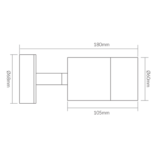 With dimensions of 105mm head length, 60mm diameter, and an overall projection of 180mm, this wall-mounted luminaire offers a compact and functional installation profile. Weighing 0.42kg, it ensures ease of installation while maintaining structural durability. Backed by a 3-year warranty on the fitting and a 1-year warranty on the lamp, this product provides a reliable and adaptable lighting solution, with photometric data available upon request for detailed lighting design and specification requirements.