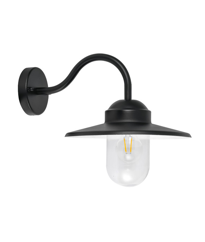 This wall light offers a refined barn style design that combines contemporary engineering with a classic profile, making it a dependable choice for residential and commercial exteriors. Constructed from aluminium, the fitting provides excellent durability while remaining lightweight, and the matte black finish delivers a sleek modern look that complements a variety of architectural surfaces. The clear glass enclosure around the lamp holder ensures unobstructed light transmission while protecting the globe from moisture and debris.