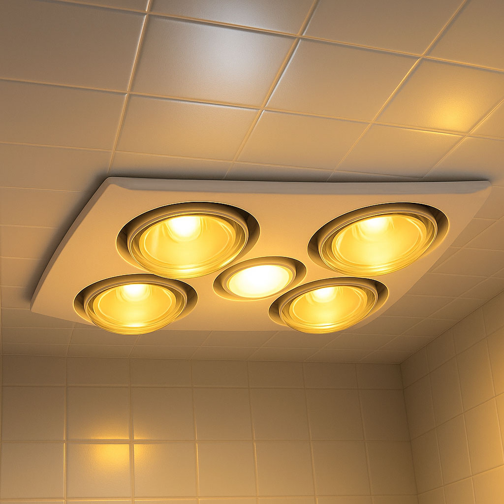 This 3-in-1 bathroom heater a low profile that is ideal for all contemporary bathroom design. It comes complete with 4 x 275W infrared heat lamps to any bathroom that requires instant heat.