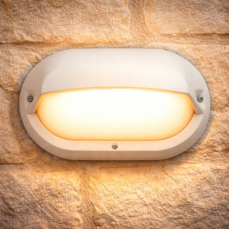 Eyelid bunker light with genuine lexan polycarbonate base. White colour and diffuser with impact resistance rating IK10.